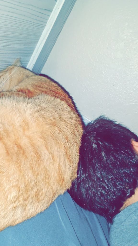 Then, I realized I was hungry and had to get up to eat, so I checked on my little guy, and saw – (as usual) – his cat sleeping right next to him – like Simba does every night. π
