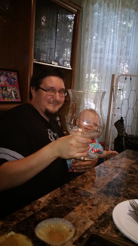 I was talking to my mother and venting about some things going on in my life, and she was venting about her own things to me. We were just having a normal gal’s chat, and throwing our complaints out there, and when I looked at my brother – he was holding this huge wine glass.